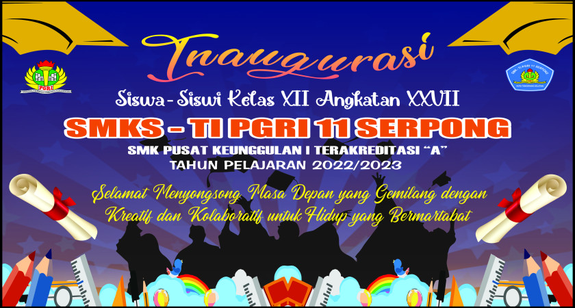 Alhamdulillah hirobbil alamin.. Puji syukur kita panjatkan kehadirat Allah SWT yang mana tahun ini adalah tahun ke 2 SMKS-TI PGRI 11 Serpong melaksanakan kegiatan Inaugurasi atau Wisuda Pelepasan Siswa/i Kelas XII Angkatan ke 27 Tahun Pelajaran 2022/2023 dan meluluskan 100% sejumlah 122 siswa/i yang siap BMW (Bekerja, Melanjutkan, Wirausaha). acara tersebut dilaksanakan di Sekolah SMKS-TI PGRI 11 Serpong pada sabtu tanggal 03 Juni 2023 bertemakan "Selamat Menyongsong Masa Depan yang Gemilang dengan Kreatif, Kolaboratif, untuk Hidup yang Bermartabat". berkat kerja keras panita (Guru, Osis, Team VTC) dan effort dari orang tua siswa/i serta suport dari beberapa pihak (Seponsor). maka Kepala Sekolah Bpk. Masfur Siddik, S.Th.I mewakili seluruh warga SMKS-TI PGRI 11 Serpong Mengucapkan Terimakasih kepada seluruh Tamu undangan Orang Tua Siswa/i Kelas XII dan khususnya Tamu Kehormatan mulai dari Ketua PGRI Provinsi Banten Bpk. Kosrudin M.Pd, Ketua PGRI Kota Tangerang Selatan Bpk. Cartam, S.Pd., M.Pd, Ketua Cabang PGRI Kec. Serpong Bpk. Yayat Supriatna, S.Pd, Pendiri SMKS-TI PGRI 11 Serpong Bpk. Drs. H. Jamas Sopiandi, M.Pd serta Para Kepala Sekolah persekolahan PGRI se Kec. Serpong dan Pihak Keamanan Babinsa dan Binamas Kec. Serpong sehingga acara tersebut dapat berjalan lancar dan sukses dari mulai persiapan sampai selesainya acara tersebut